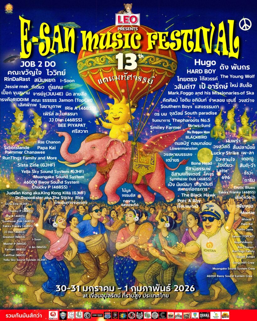 E-San Music Festival 13 returns with the signature hippie spirit, creating a vibrant open-air music festival that blends music, art, culture, and nature into one soulful celebration. Rooted in the values of peace, freedom, and sustainable living, the festival invites free spirits to reconnect with sound, creativity, and the natural.
