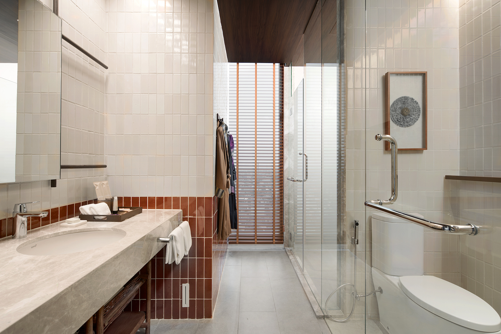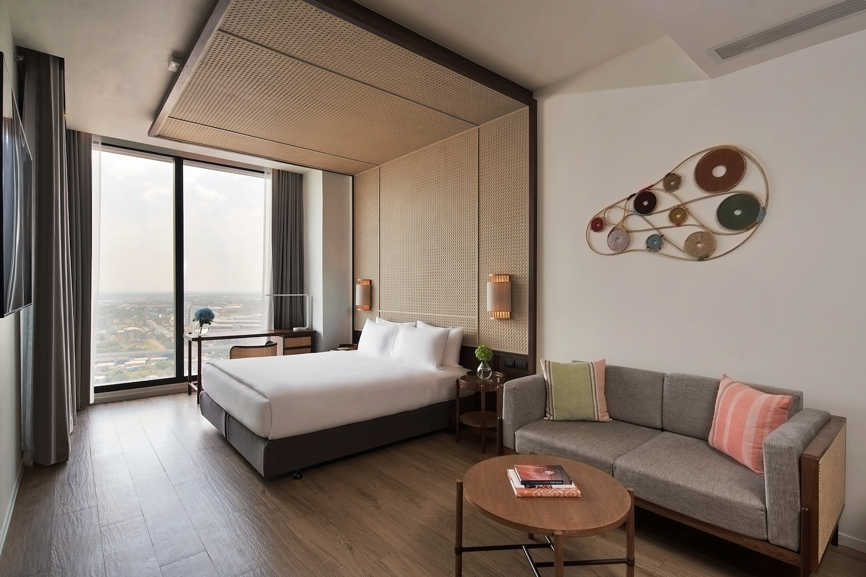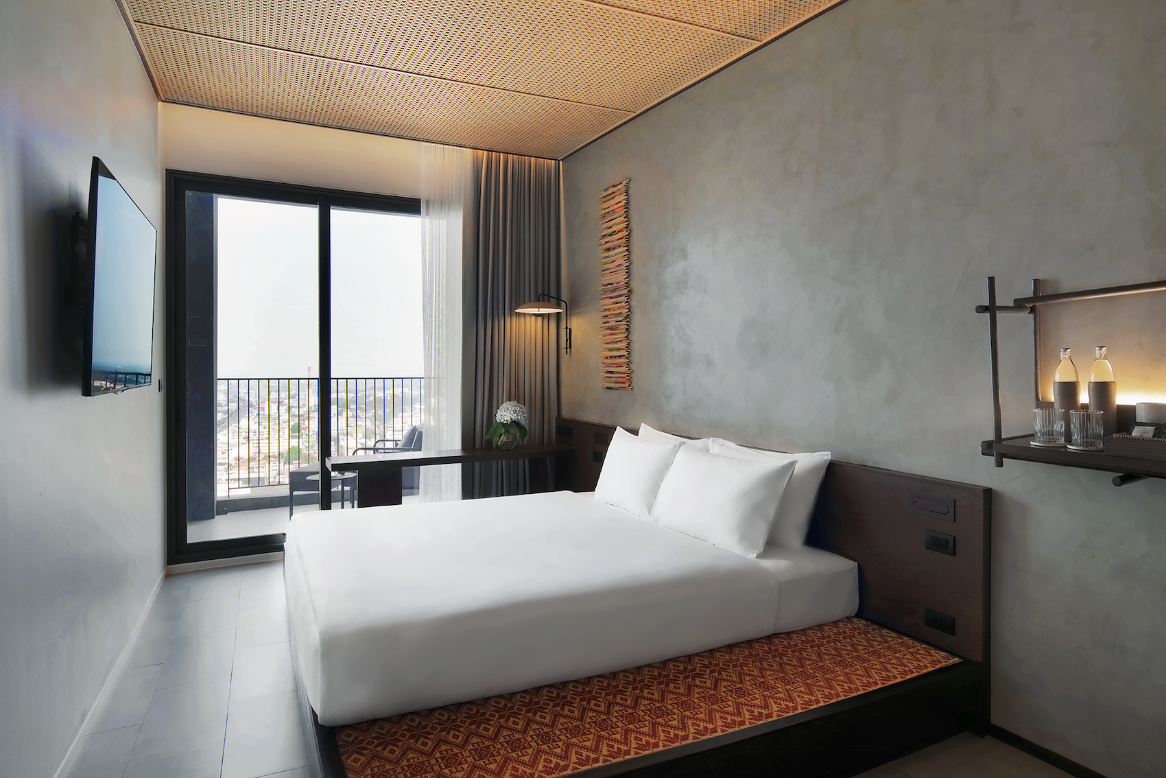 Light and airy floor-to-ceiling windows in 34 sqm rooms with walk-in closet and expansive views of the city from your workstation.